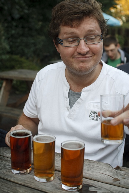 Honza testing various beers, Cambridge, UK. (2013/9)
