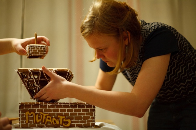 Every year, Janinka, Zuza, Verona & Pavla make gingerbread houses for christmas. This time, the Kerekrety sisters one-upped themselves with a model of the Slovak Radio Building (the famous inverted pyramid). Bratislava, Slovakia. (2013/12)