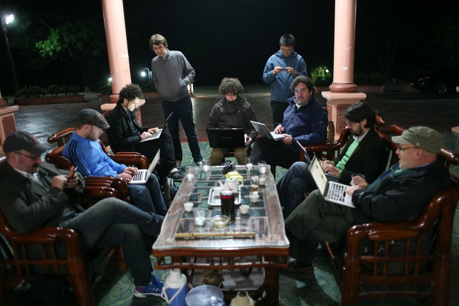 A quiet and cold evening at a conference, Ba Vi national park, searching for a bit of a connection. More photos from Vietnam here. (2013/12)