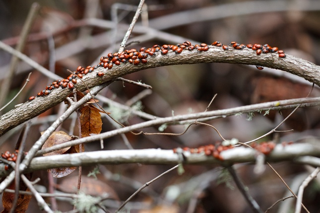 At one point, ladybugs crowded any plant they saw around Prince creek in Redwood regional park, Oakland, CA, USA. (2014/3)