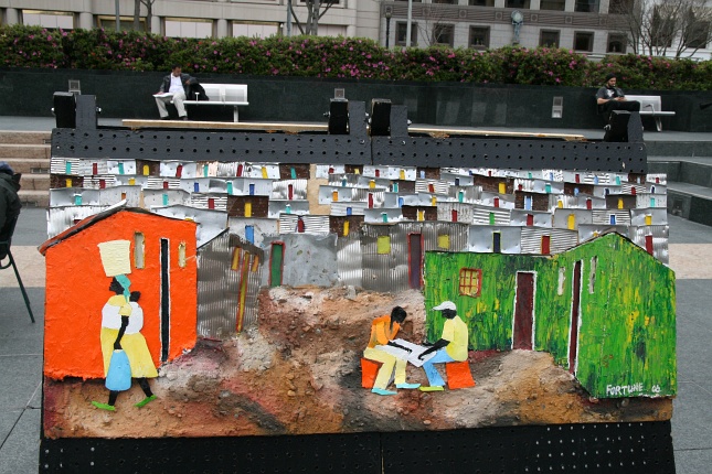 I am rarely moved by modern art as I was by this. We met the south african artist, Fortune Sitole, who makes these large boards from metal scraps in San Francisco, CA, USA. (2014/3)