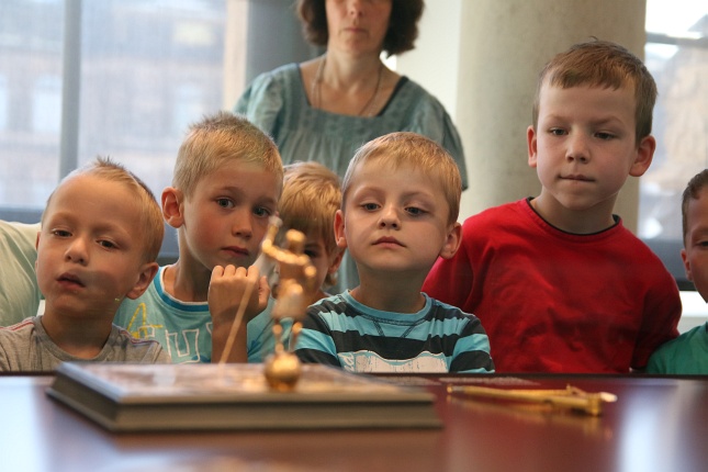 Children in the museum of measurement instruments in Dresden, Germany. Pavla went to this museum with me and liked it too. An enlightened aristocrat was collecting instruments for many years - telescopes, vacuum pumps, globes, clocks, star models... It was impressive. (2014/7)