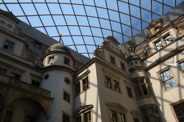 They know how to protect and preserve the old nicely here in Dresden. It doesn't rain in this courtyard. Dresden, Germany. (2014/7)